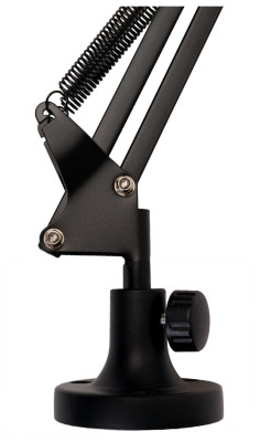 Также в комплекте есть держатель, подходящий для большинства типов проводных динамических микрофонов. При необходимости на стойке можно разместить любой другой держатель (например, держатель паук), так как стойка имеет стандартную резьбу. Помимо этого стойку очень легко отрегулировать под рабочее место, так как она обладает двумя плечами по 36 см каждый.