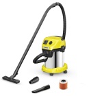 Энергоэффективный аппарат Karcher WD 3 P S V-17/4/20 развивает высокую силу всасывания при низкой потребляемой мощности (лишь 1000 Вт). При этом он оптимально сочетается со всасывающим шлангом и снабженной вставками насадкой для пола, благодаря чему обеспечиваются превосходные результаты сбора любого мусора – сухого или влажного, крупного или мелкого. Этот хозяйственный пылесос, впечатляющий своей компактностью, оснащен прочным 17-литровым мусоросборником из нержавеющей стали, 4-метровым кабелем, 2-метровым всасывающим шлангом и фильтр-мешком из нетканого материала. Благодаря неразборному патронному фильтру он позволяет чередовать операции влажной и сухой уборки без замены фильтра. Встроенная штепсельная розетка с автоматикой включения / отключения позволяет подключать к нему электроинструменты (лобзики, шлифовальные машины и т. д.) для немедленного сбора пыли и стружки, образующихся при выполнении работ с ними. Функция выдувания значительно облегчает очистку труднодоступных мест. Для компактного хранения аппарата шланг подвешивается на моторной части, кабель – на специальном крюке, а удлинительные трубки и насадка для пола закрепляются на отбойнике. Замки Pull & Push позволяют очень легко присоединять и отсоединять мусоросборник. Рукоятка может сниматься с всасывающего шланга для прикрепления насадок непосредственно к нему.